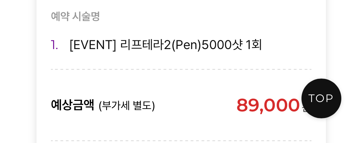 행사 가격으로 5000샷 89000원 (부가세 97900원)